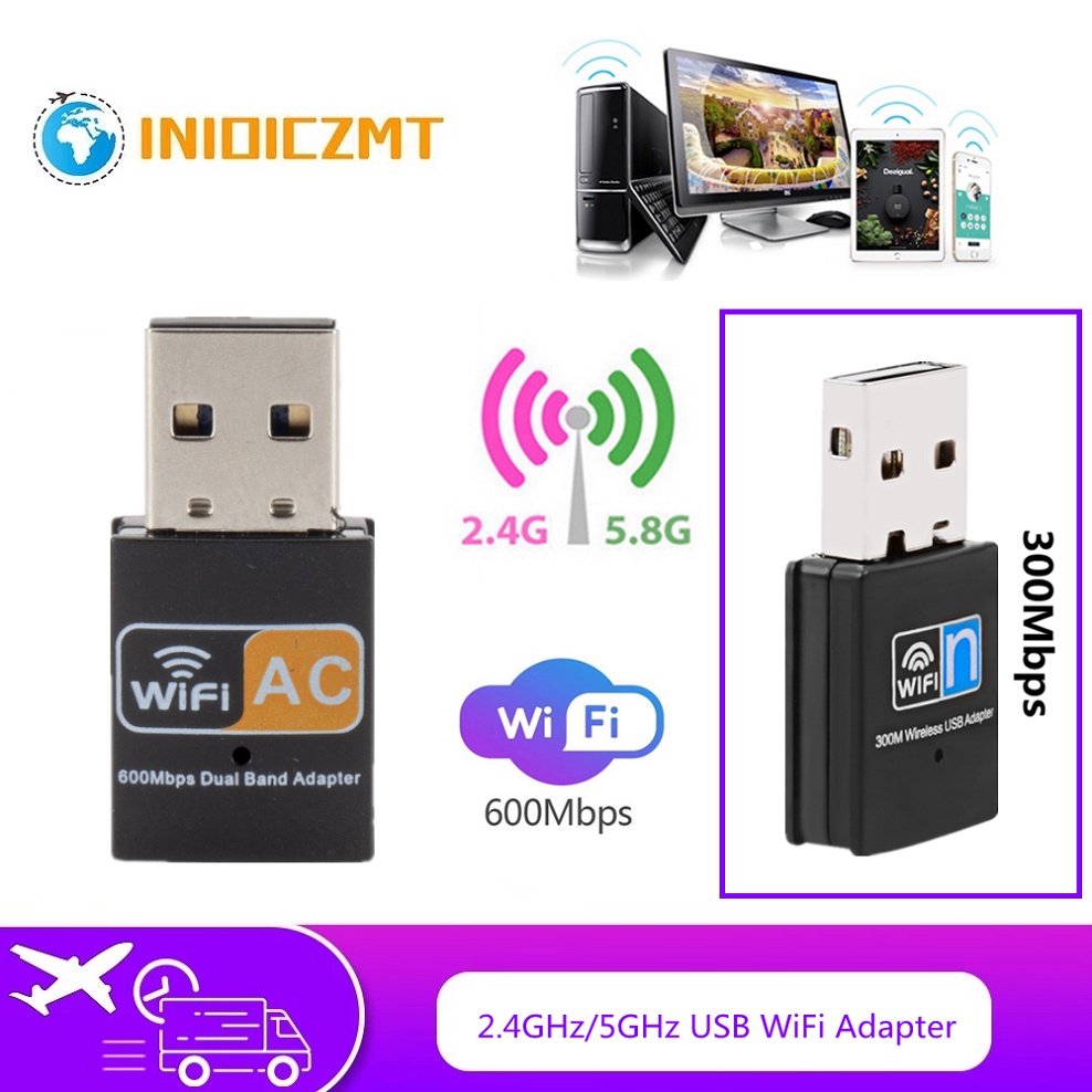 Adaptador Wifi USB 600Mbps Dual Band 2.4G 5Ghz 802.11AC Placa De Rede Sem Fio 300M Antena Dongle Receptor Wi-Fi