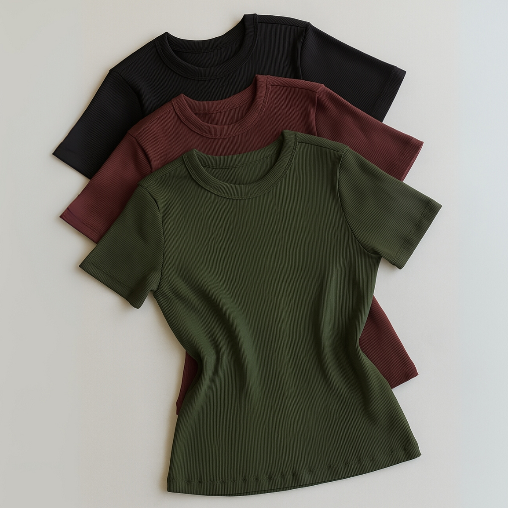 Kit 3 Peças Blusa Feminina Manga Curta Gola Alta Básica Slim Malha Ribana Canelada Confortável Verão