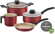 Jogo de Panelas Tramontina Sicília 4 Peças Vermelho em Alumínio Antiaderente Starflon Excellent