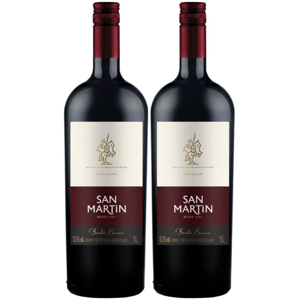 Kit 2 Unidades Vinho Tinto Bordo Suave San Martin 1lt