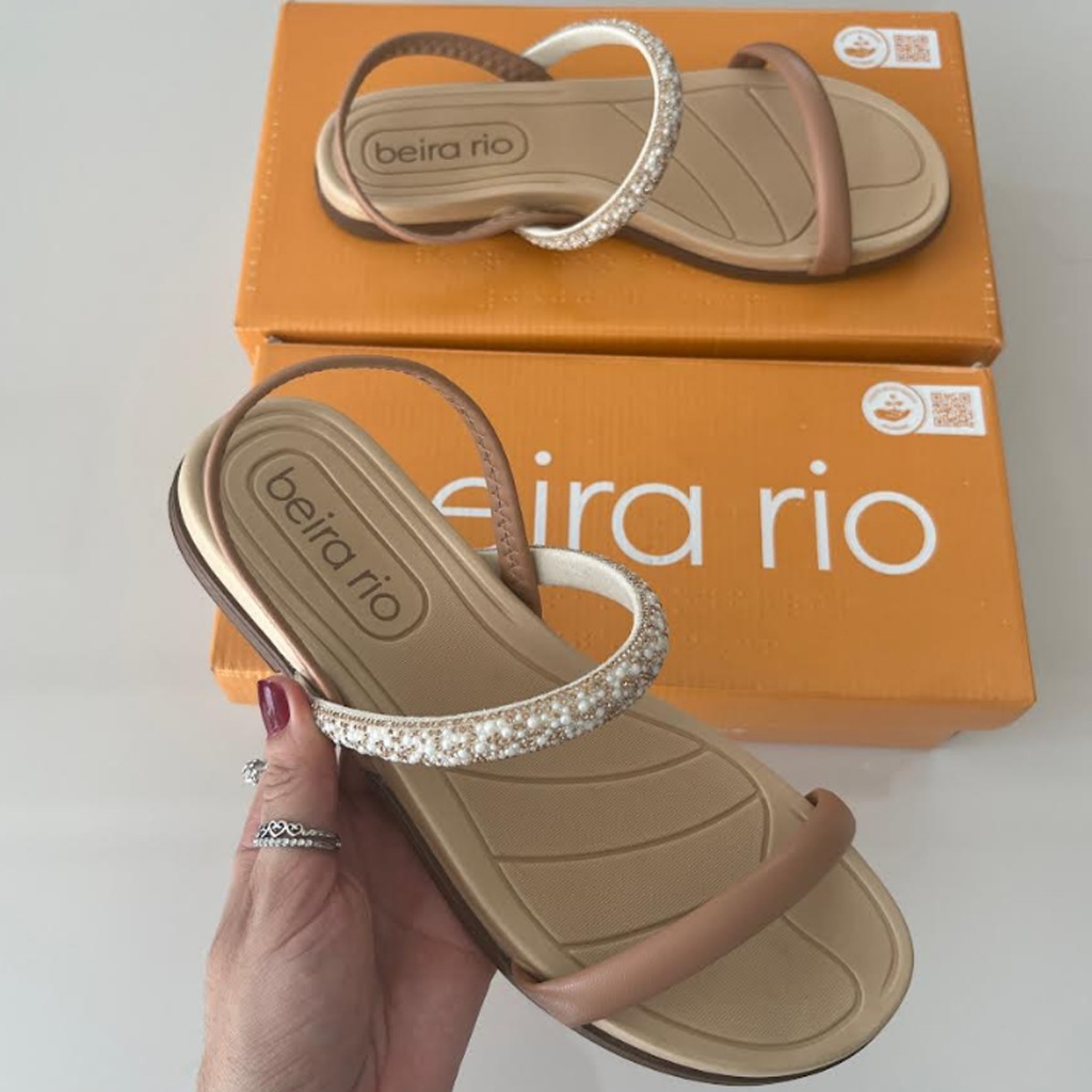 Sandália Rasteira Feminina Beira Rio Original Rasteirinha Pedraria Lançamento Strass Perólas 8507