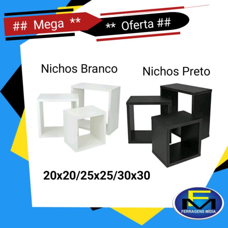 kit 3 Nicho Preto ou Branco Para Decoração em Quarto Sala Banheiro e diversos 100% mdf