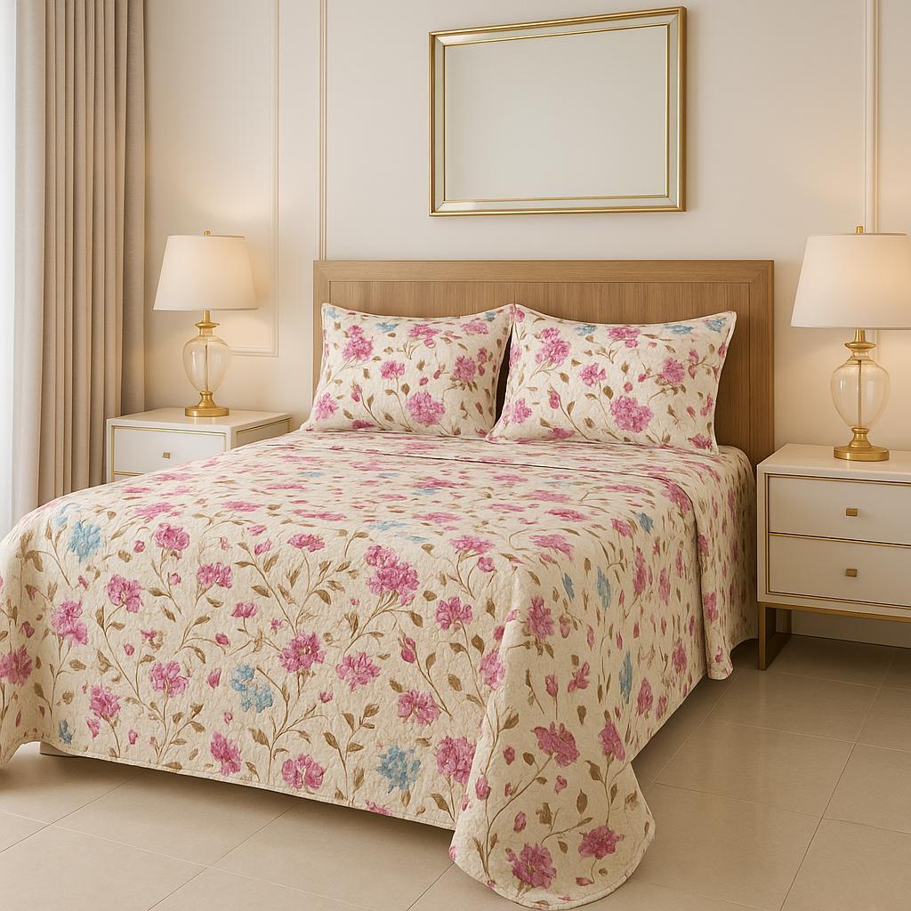Cobre Leito Kit com 3 Peças Cama Casal Queen Box Quarto Colcha Maria Valentina Dupla Face Matelado c/ Porta Travesseiro