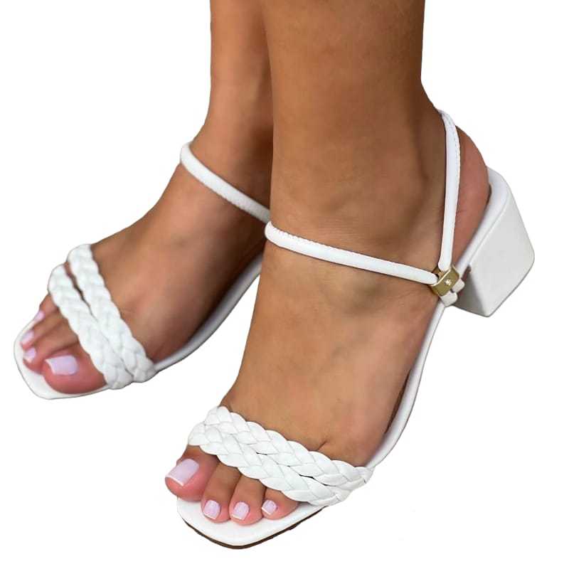 Sandalia Feminina Bloco Baixo Tamanco Salto Médio Saltinho Confortável ( 2 Tiras Sandália )