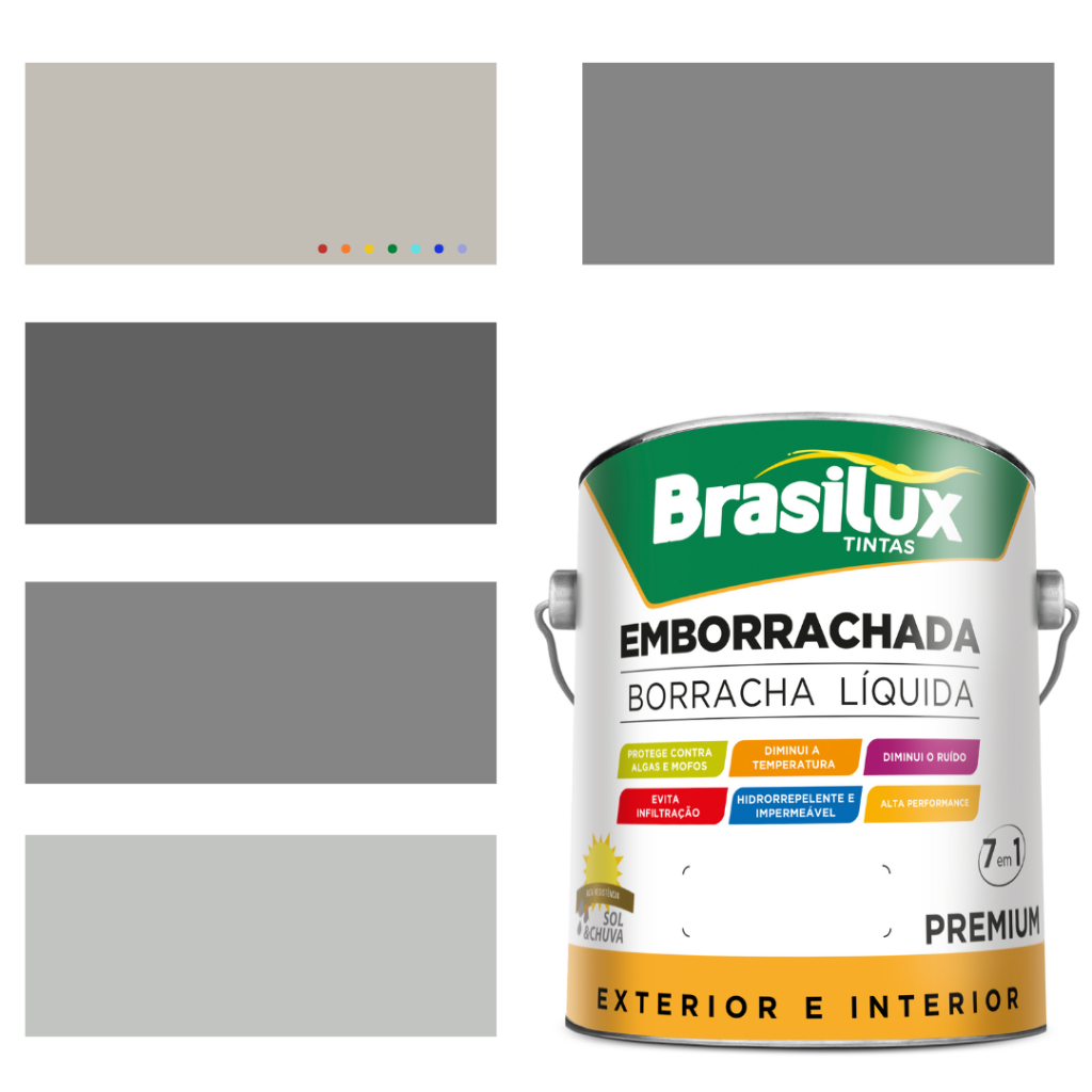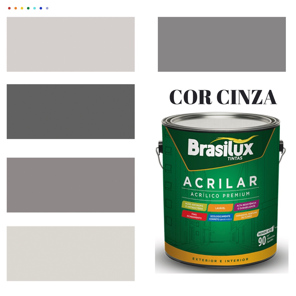 Tinta de Parede Acrílica Cor Cinza 3,2l Lavável Premium Antimofo Acrilar Brasilux Cinza Elefante/ Cinza Crômio/ Cinza Chumbo/ Ouro Branco /Cinza Granizo/ Cinza Inox/Papel Picado/Branco