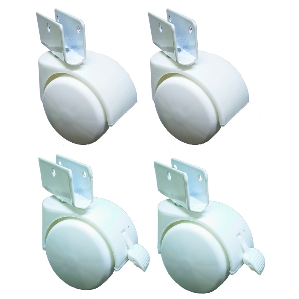 Kit 2 Rodizio para moveis Giratório com freio + 2 sem freio 50mm Perfil U 12mm Branco