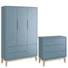 Cômoda Gaveteiro E Guarda Roupa Infantil 3 Portas New Classic Azul Com Pés Madeira Natural - Reller - Blush