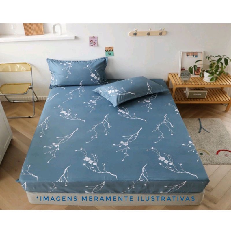 Jogo de Cama Casal Box 3 peças Kit Lençol + 2 Fronhas Microfibra