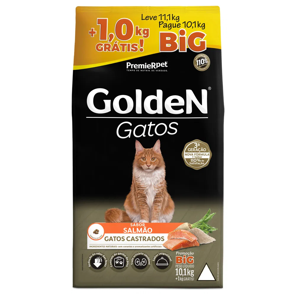 Ração Golden Gatos Adultos Castrados Salmão Big 10,1kg + 1kg
