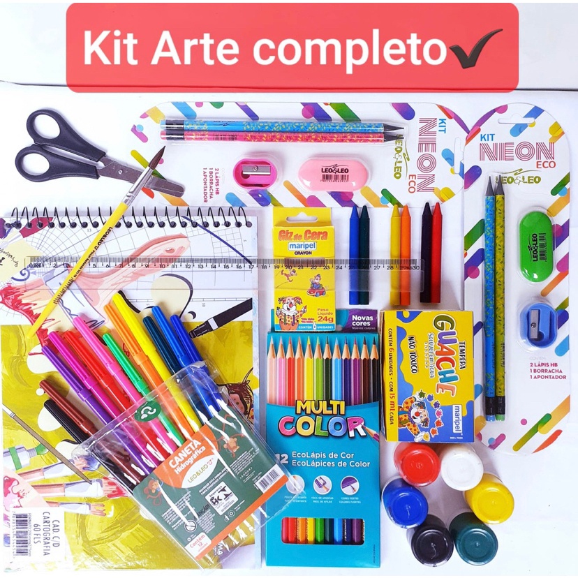 Kit Material Escolar Papelaria 44 Itens Borracha Lápis De Cor Colorido