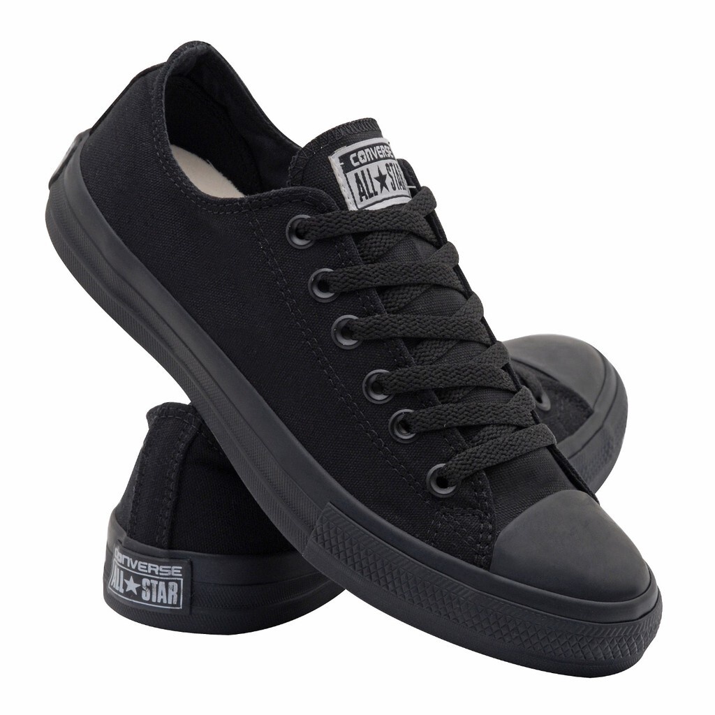 tenis todo preto allstar cano baixo tecido feminino e masculino