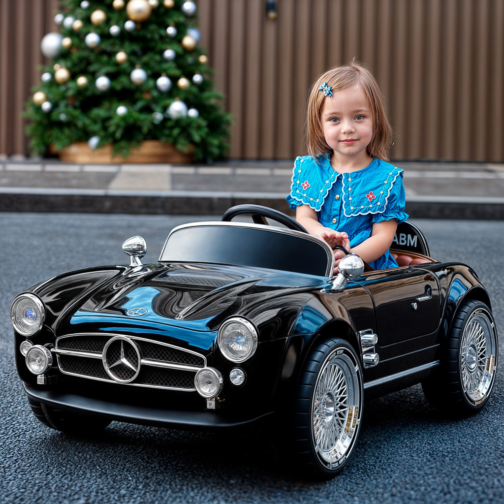 Mini Carro Veiculo elétrico infantil Retro 12V Preto Com Controle Remoto Criança Meninos e Meninas