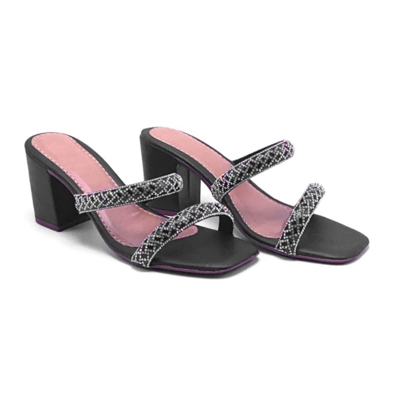 sandália,feminina,salto bloco,duas tiras de strass 15 cm,tamanco R12