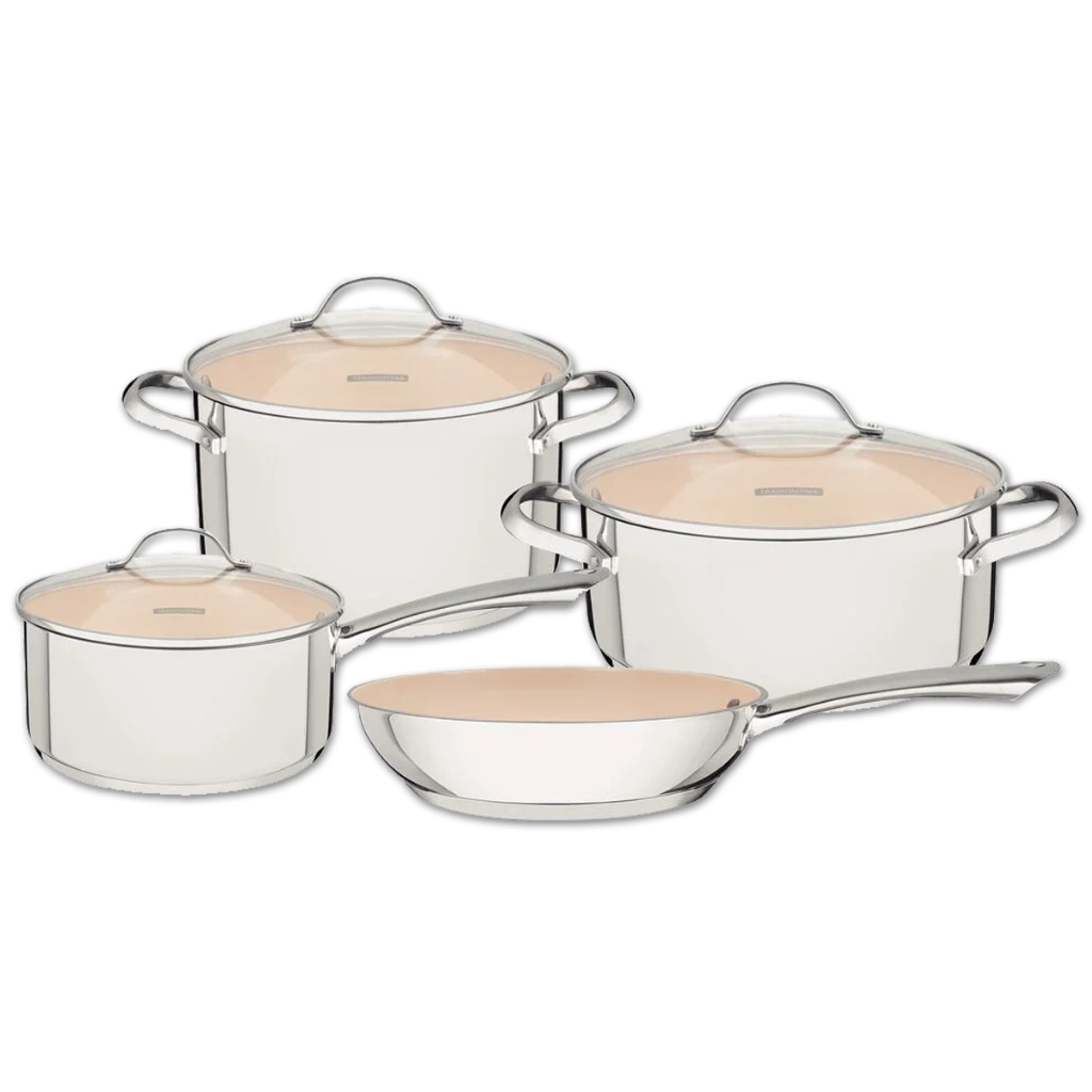 Jogo De Panelas Tramontina Em Aço Inox Com Fundo Triplo E Revestimento Cerâmico Bege 4 Peças