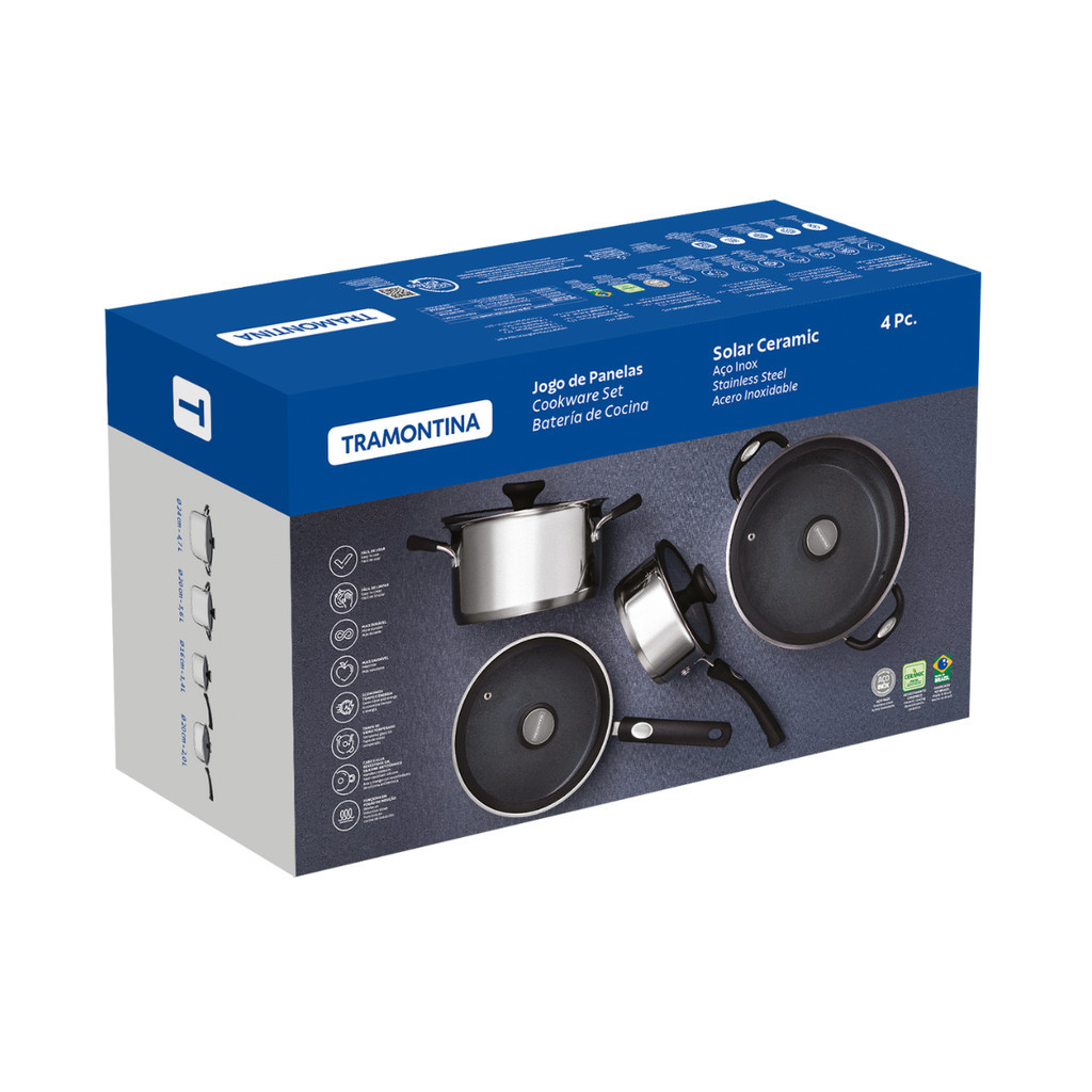 Jogo De Panelas Solar Ceramic Aço Inox Fundo Triplo Rev Interno Cerâmico 4 Peças Tramontina 65120026