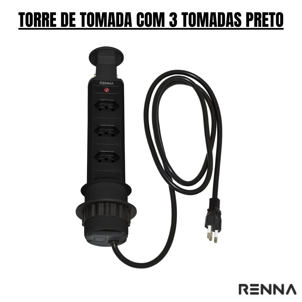 TORRE DE TOMADA COM 3 TOMADAS PRETO - RENNA