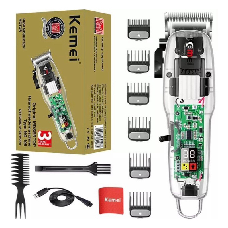 Máquina de cortar cabelo profissional Kemei original recarregável transparente Visor Digital LCD Bivolt NG-108