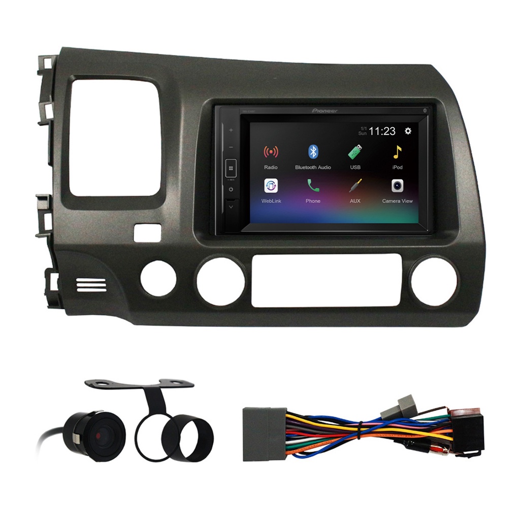 Kit Multimídia Pioneer 2 Din New Civic 2007 2008 09 2010 2011 6,2 Pol DMH-A248BT Moldura Grafite Espelhamento Camera Ré