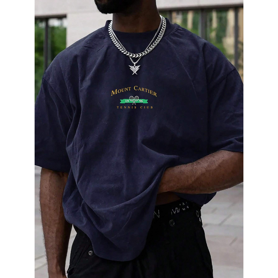 Camiseta Oversized Mountcartier Desenho Grafico Estampado Frente Montanha Cartier Club Tênis Blusa Manga Curta Ombro Caido Long Line