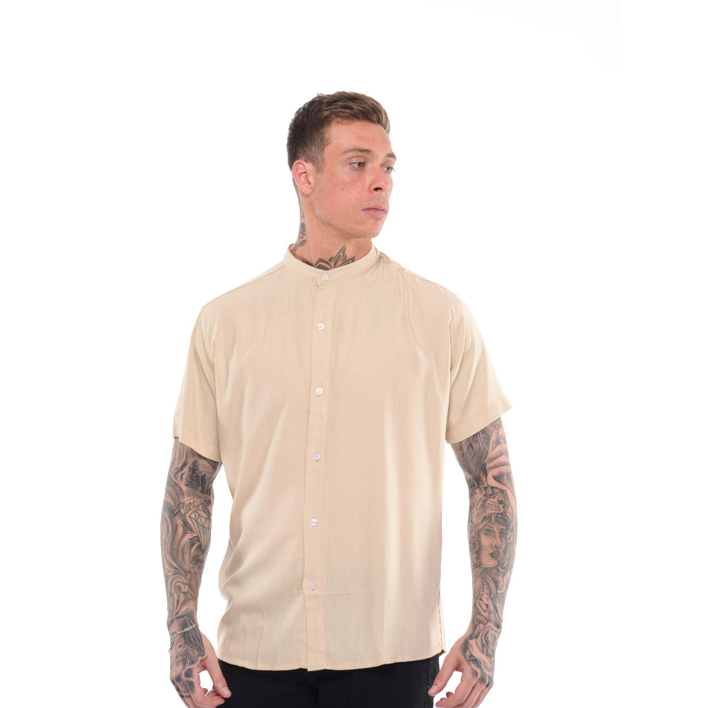 Camisa Social Masculina Gola Padre Slim Fit com Botão Lisa