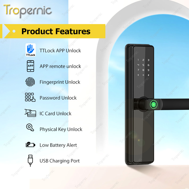 Fechadura Eletrônica De Porta Tuya Wifi Smart Door Lock À Prova D'água Impressão Digital Para De Vidro