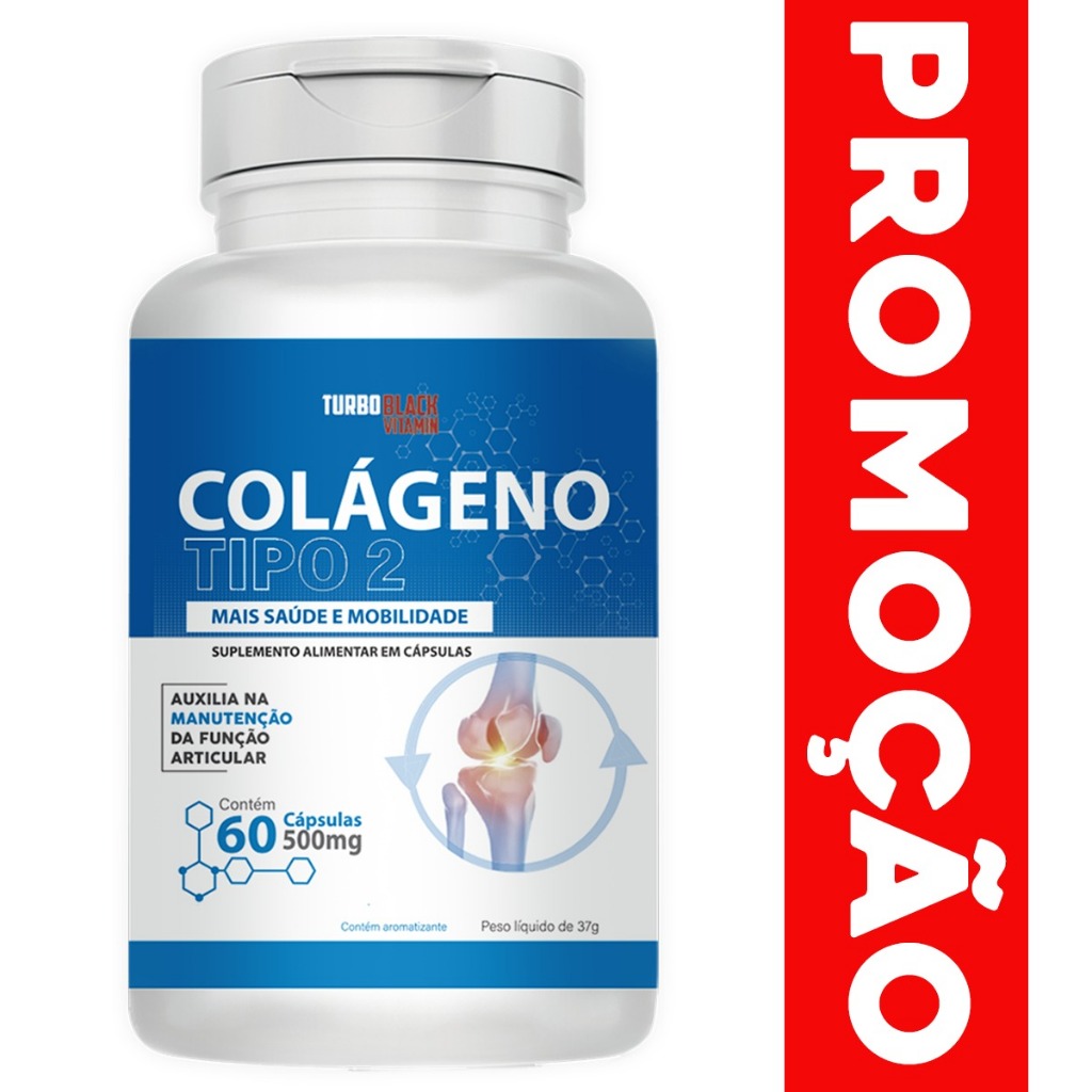 Colageno Tipo 2 Original 40 mg para Joelho Ossos Articulação e Cartilagem Turbo Black 60 cápsulas