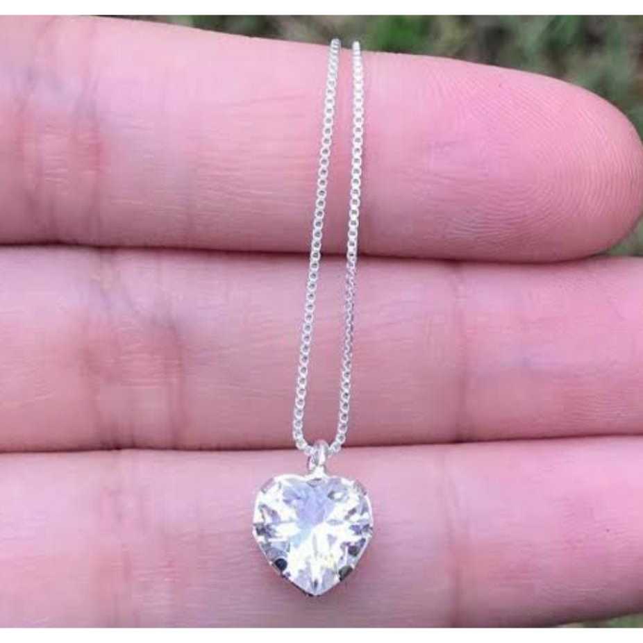 Corrente Colar Feminina Delicada com Pingente Ponto de Luz coração Pedra Zircônia em Prata 925