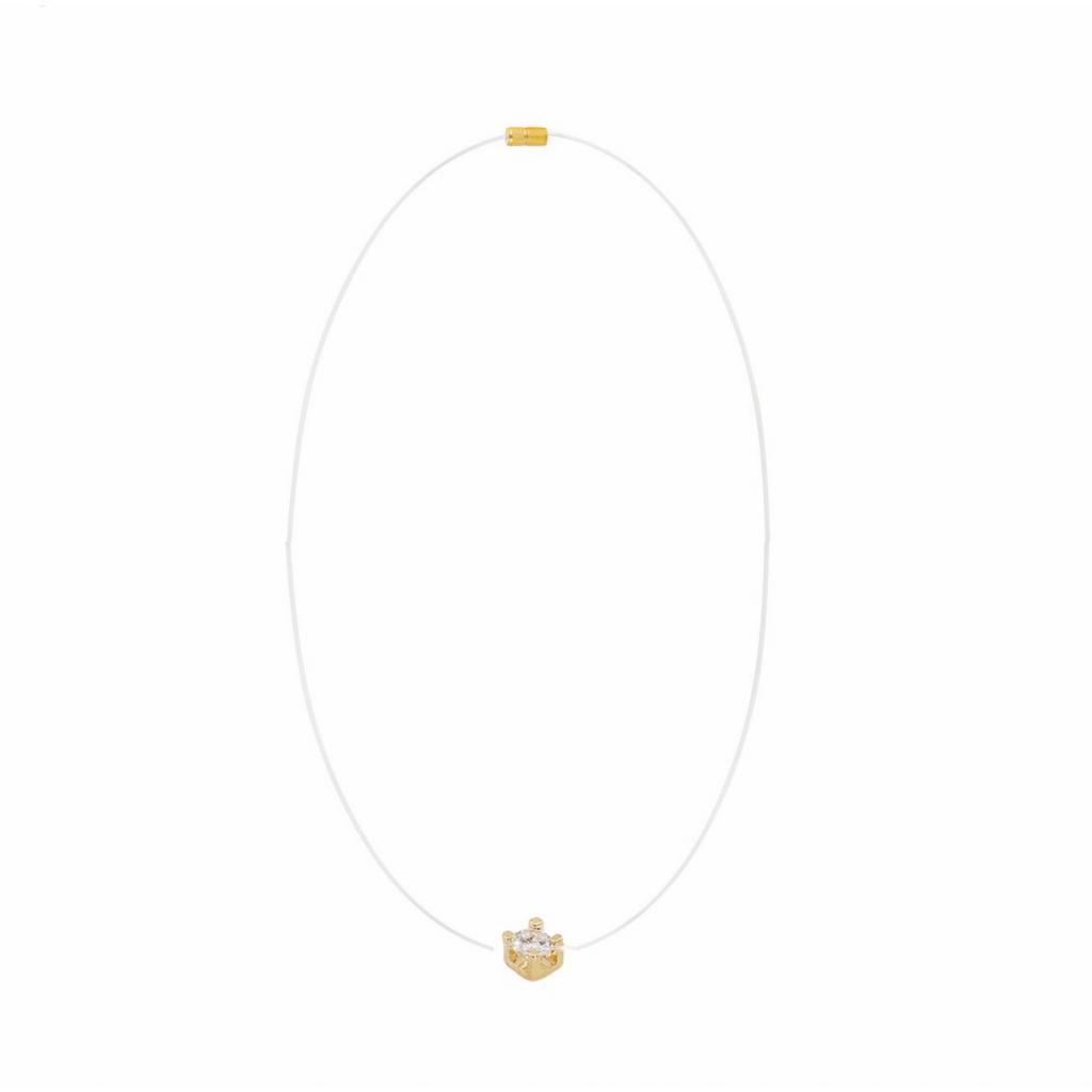 Colar Gargantilha Fio Nylon com Pingente Ponto de Luz Zircônia Cristal Folheado Ouro 18k Dourado Moda Feminina