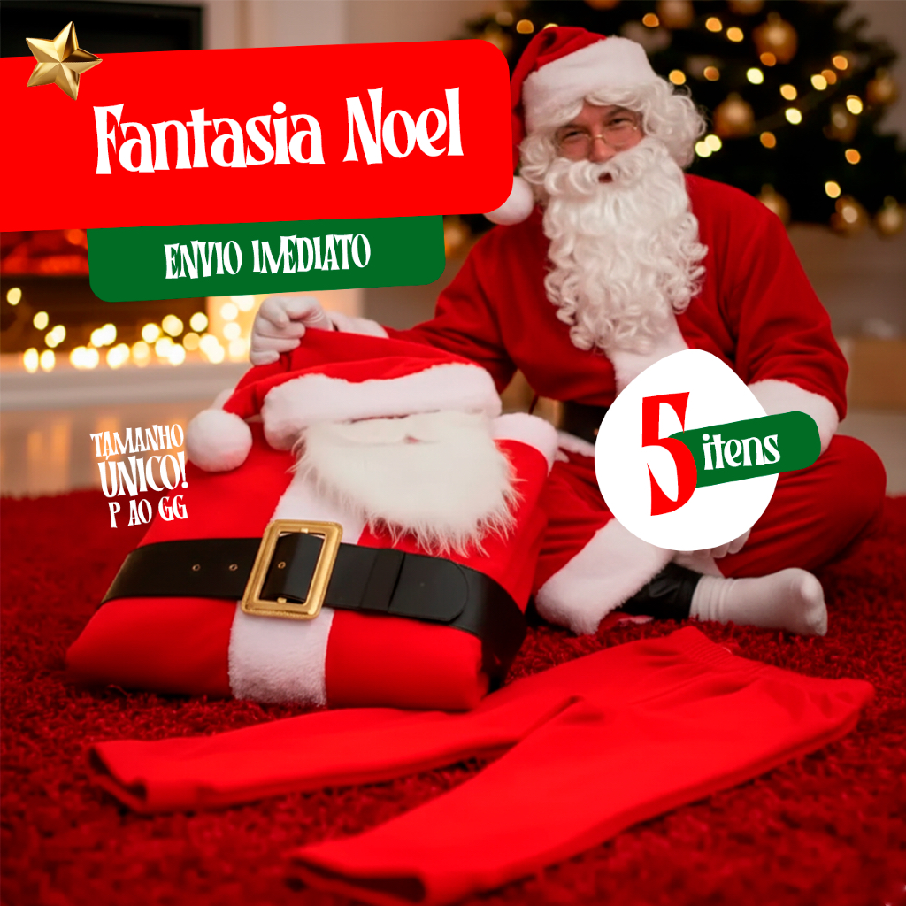 Fantasia Papai Noel Adulto Roupa Natal Luxo 5 Peças Envio Imediato