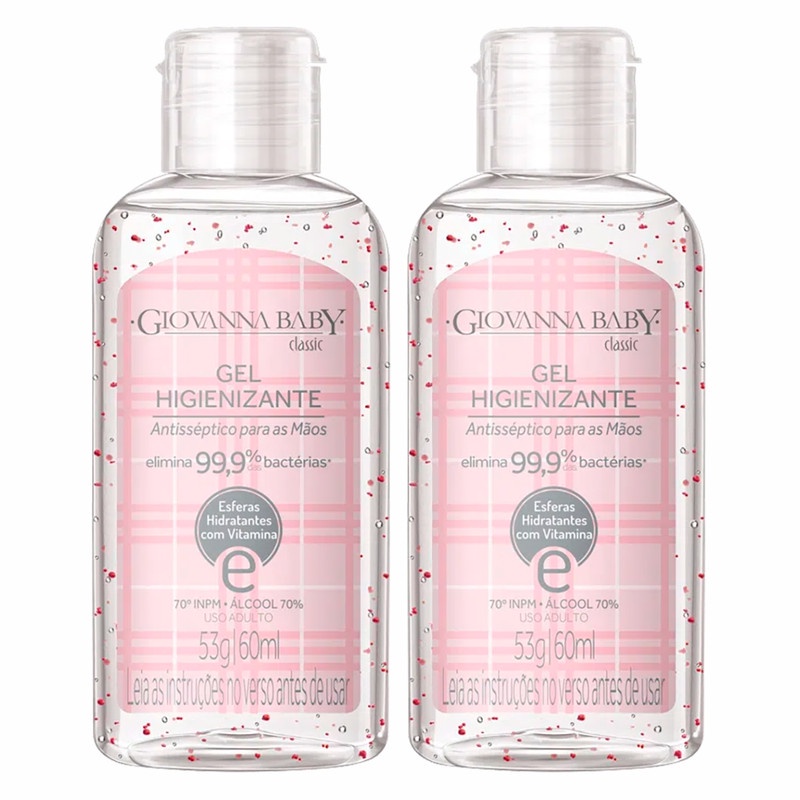 Kit 2 Giovanna Baby Classic Álcool Em Gel Higienizante Antisséptico 60ml