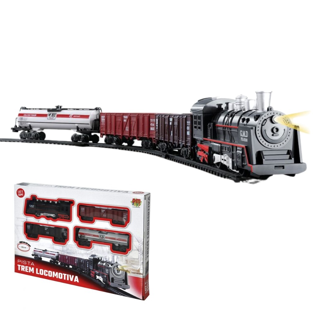 Pista Trem Clássico com Locomotiva e Trilhos Brinquedo infantil Trenzinho Ferrorama