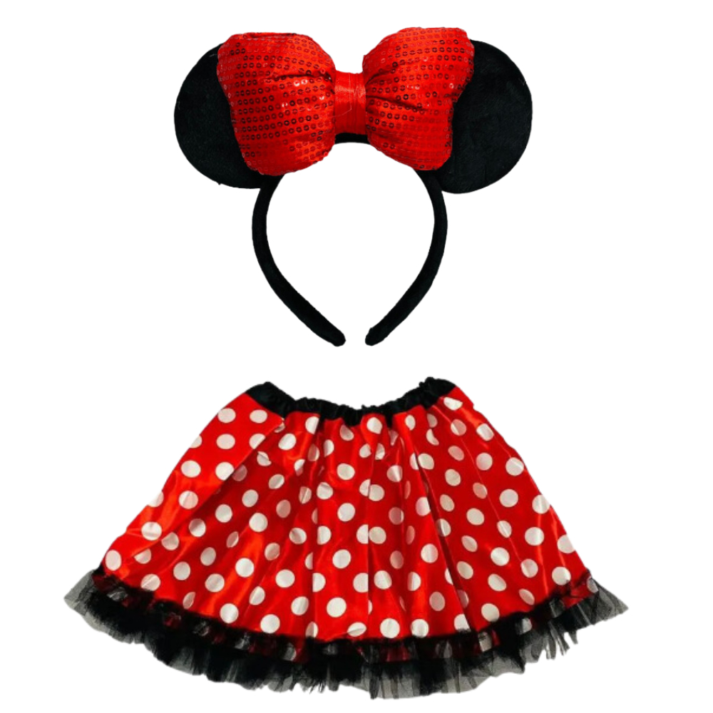 Fantasia da Minnie Infantil Vermelha Carnaval Festa Aniversário Saia Tule e Tiara