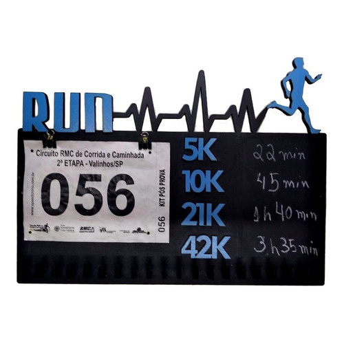 PORTA MEDALHAS ARTESANAL EM MDF PARA CORRIDA CICLISMO NATAÇÃO E OUTROS ESPORTES COM QUADRO DE RECORDES PESSOAIS
