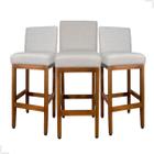 Kit 3 Banqueta Para Cozinha Alta De Madeira Maciça Eucalipto Estofada Tecido Linho Para Bancada Americana Parafusada Montável Jade