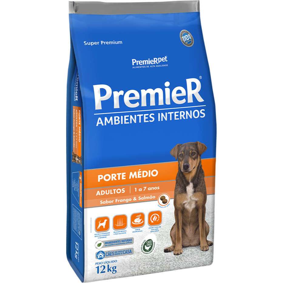 Ração Premier Pet Ambientes Internos Frango e Salmão para Cães Adultos Médio Porte 12kg