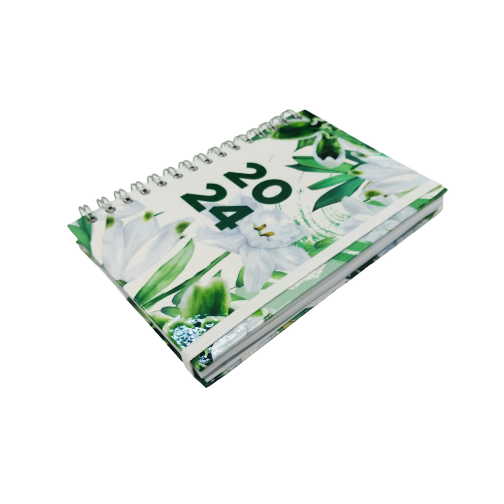 Agenda 2024 Plus Personalizada Floral Branco E Rosa Letra