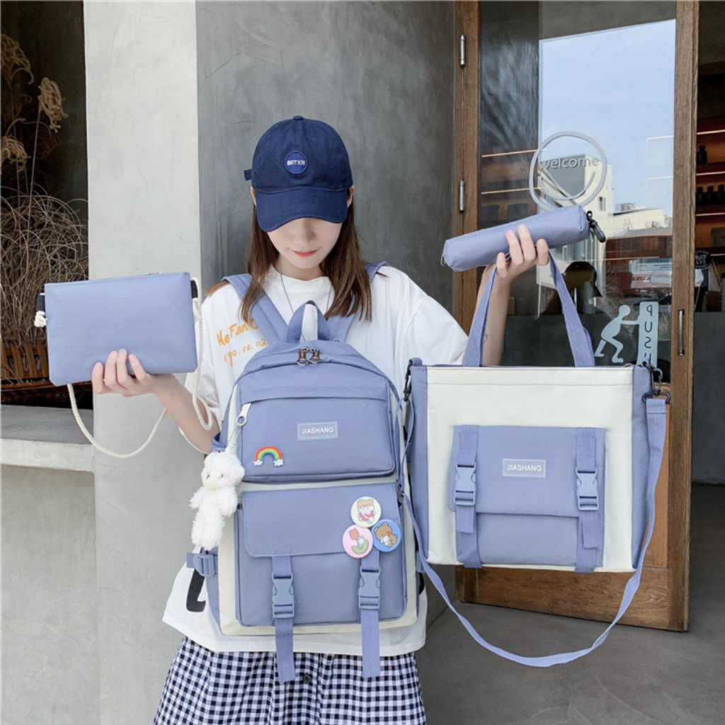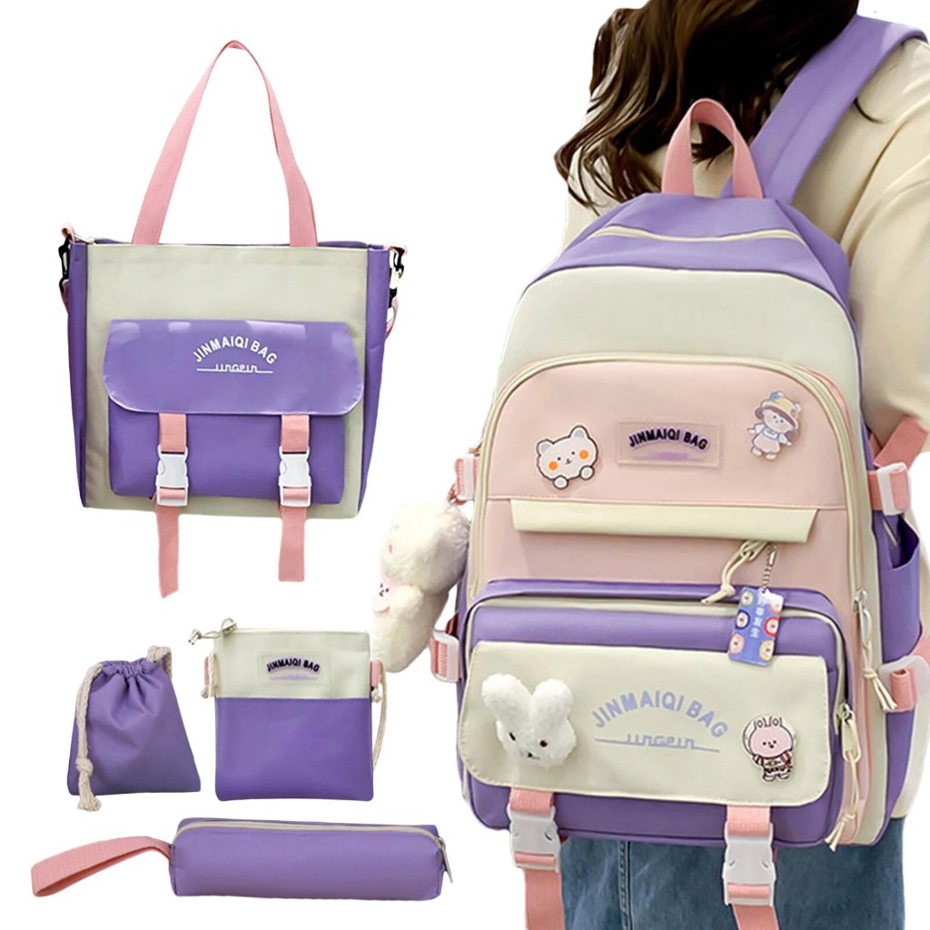 Mochila Kit Bolsas Bag Juvenil Feminina Casual Kit 5 Peças Multifuncional Semi Impermeável Resistente Original Escolar