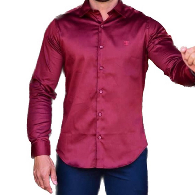 Camisa Acetinada Social Slim Fit Luxo Algodão 100% Manga Longa Masculina