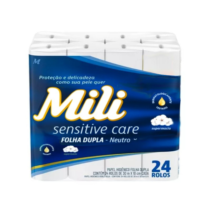 Papel Higiênico Mili Sensitive Care Folha Dupla Neutro com 12 Unidades