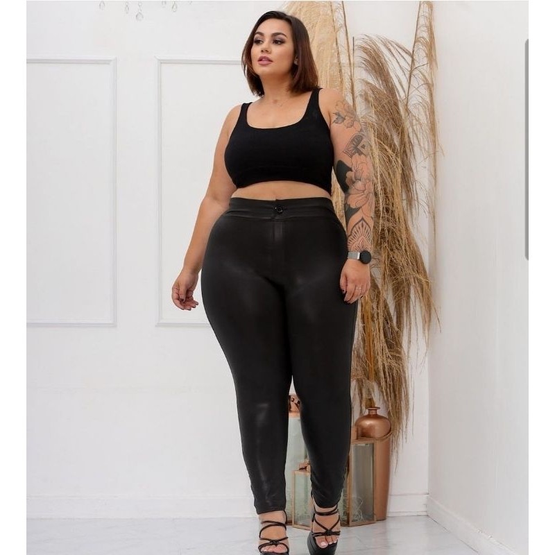 Calça Legging Cirrê Plus Size G1 G2 G3 Suplex Cós Alto Imita Couro Bilhoso Molhado Feminina