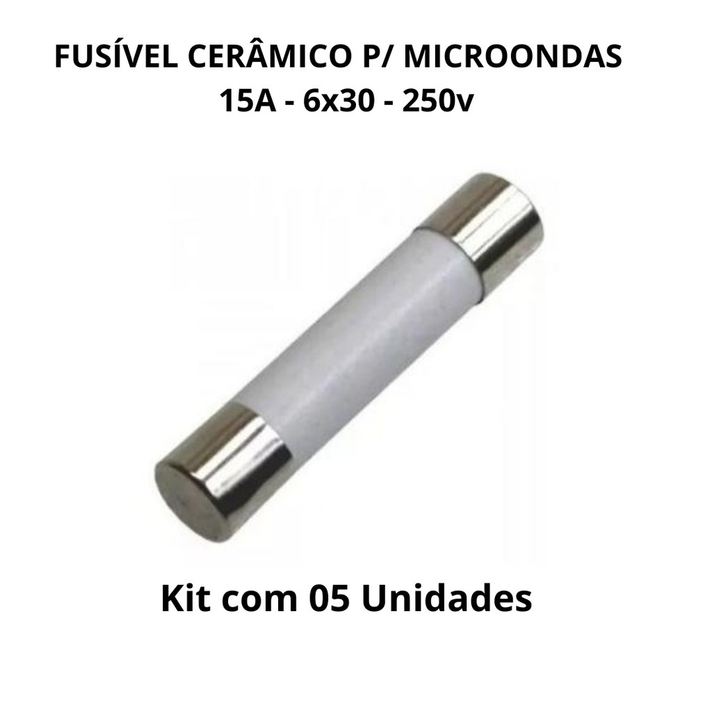 FUSÍVEL CERÂMICO MICROONDAS - Kit com 05 peças -15A -6x30 - 250v