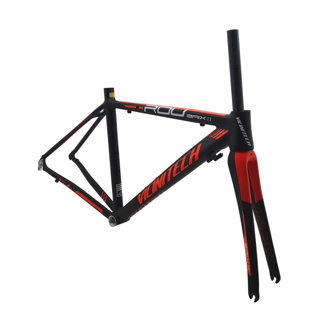 Quadro Bike Speed Vicinitech Roubaix 2 em Aluminio Garfo Carbono Aro 700 Preto com Laranja