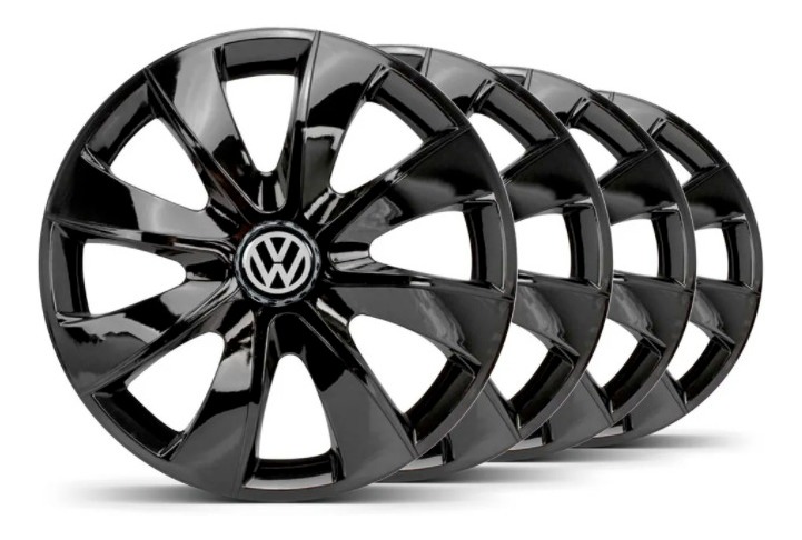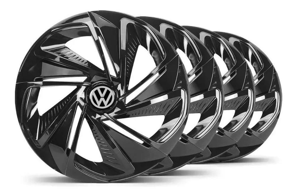 Jogo 4 Calotas Esportiva Velox Preto Brilhante Aro 14 VW Volkswagen Gol Up Fox Voyage Parati Saveiro Bora Polo SpaceFox