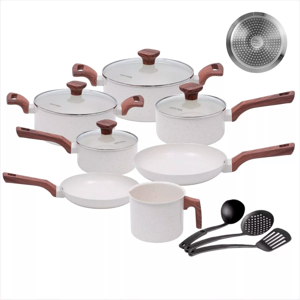 Conjunto de Panelas 10 Peças Mimo Style Vanilla Fogão a Gás Indução Vitro Cerâmico Panela Caçarola Frigideira Leiteira 3 Utensílios