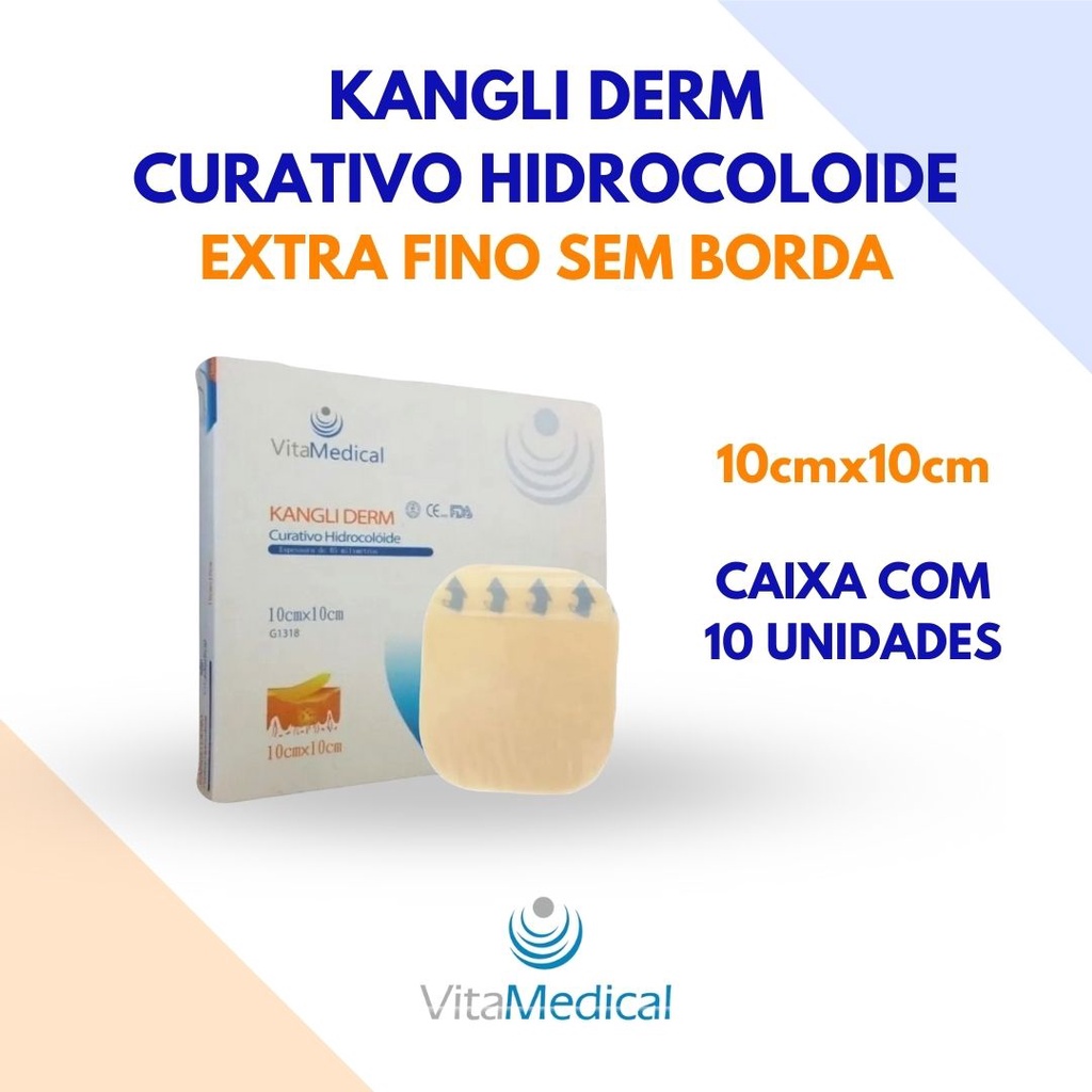 KANGLI DERM - CURATIVO HIDROCOLOIDE EXTRA FINO SEM BORDA 10cm X 10cm (CAIXA COM 10 UNIDADES)