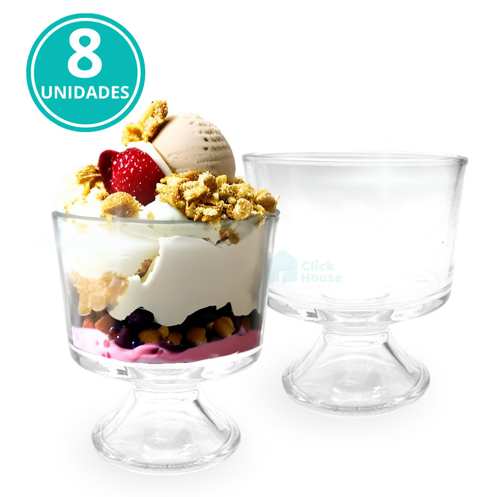 Kit 8 Taça Tigela Sobremesa Sorvete Vidro Transparente 310ml