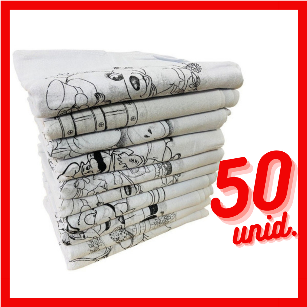 Kit 50 Pano de Prato Branco Riscado Desenhado Para Pintura - Bainha Premium 100% Algodão