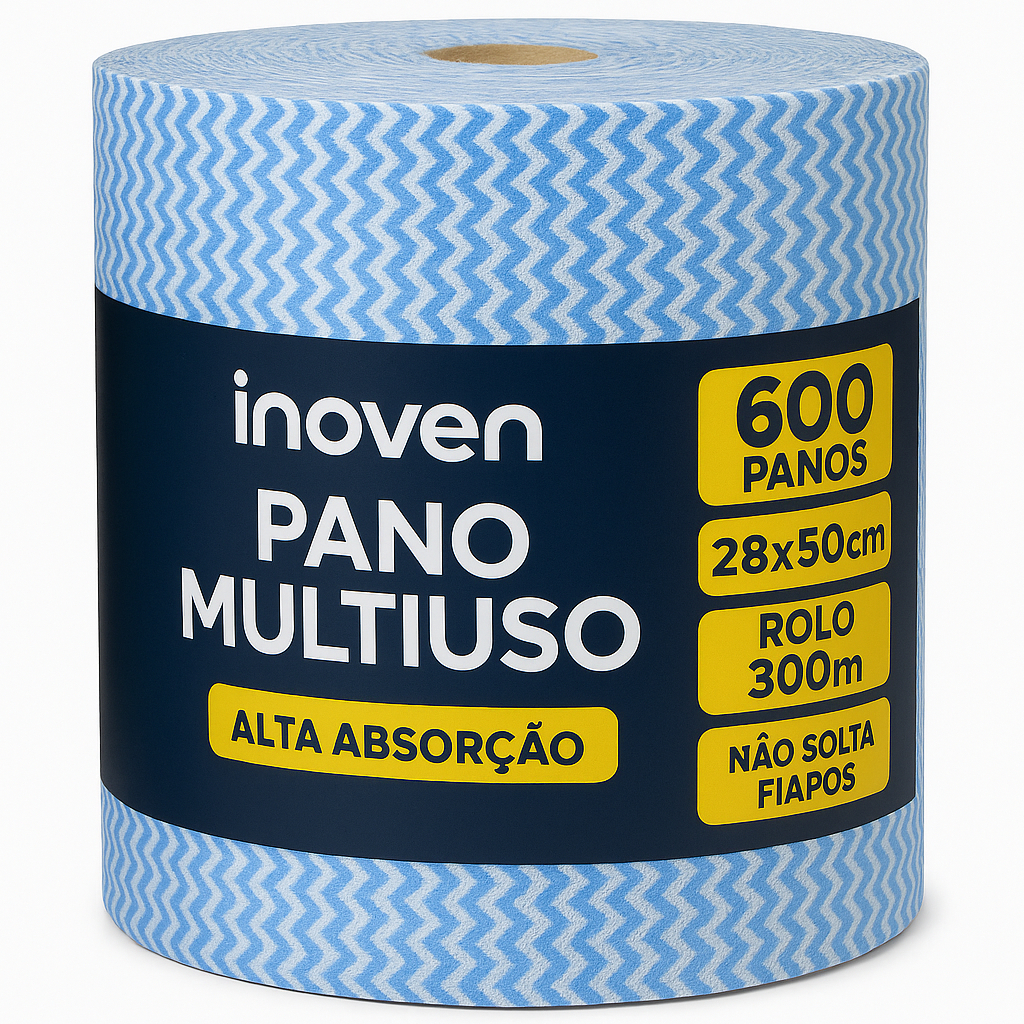 Pano Multiuso Inoven 600 Un 28x50cm Azul Lavável e Reutilizável Rolo Pano Multiuso Inoven 300m Tipo Perfex Absorvente