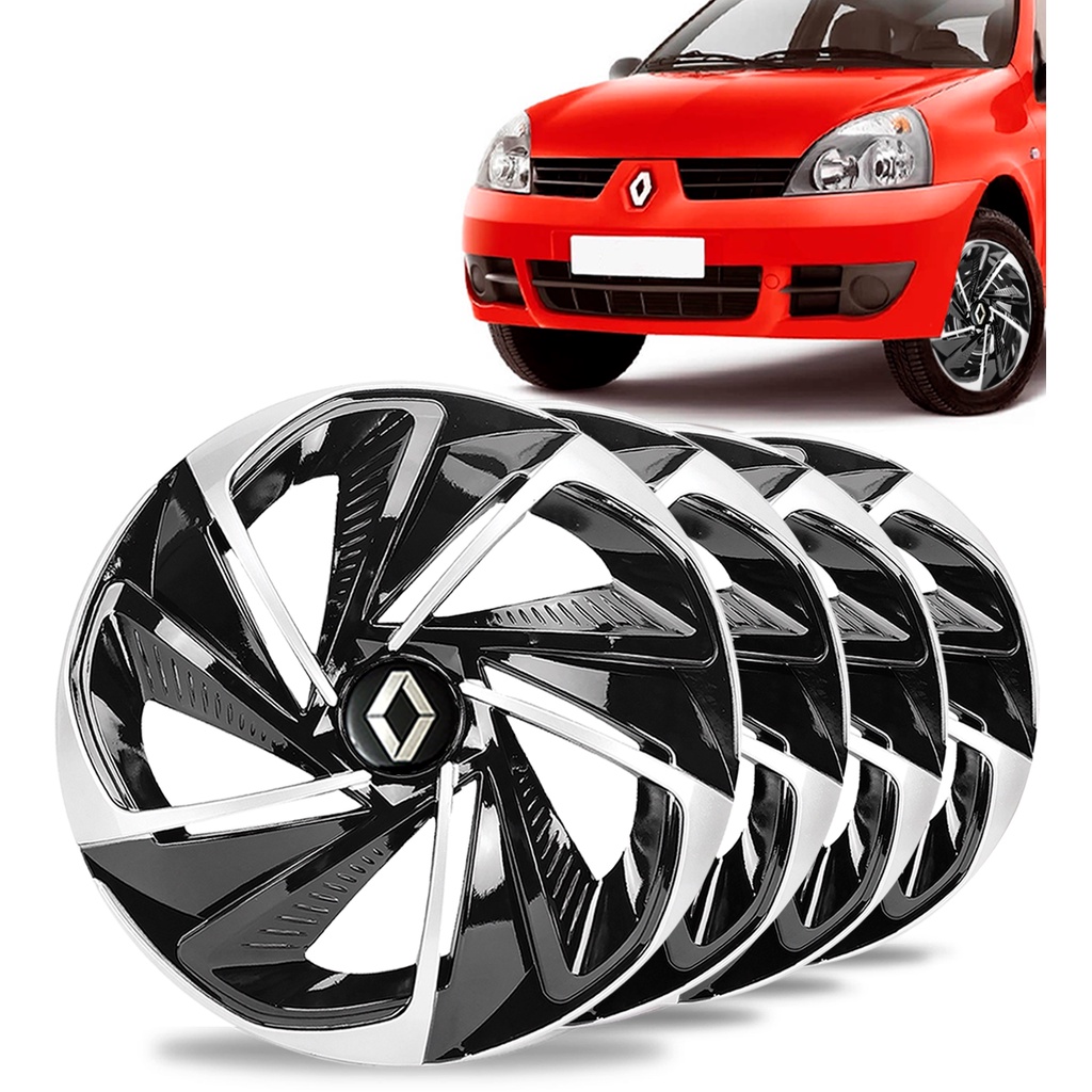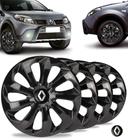 Jogo Calota Esportiva aro 14 Prime Grafite Renault Sandero Clio Logan Emblema Resinado