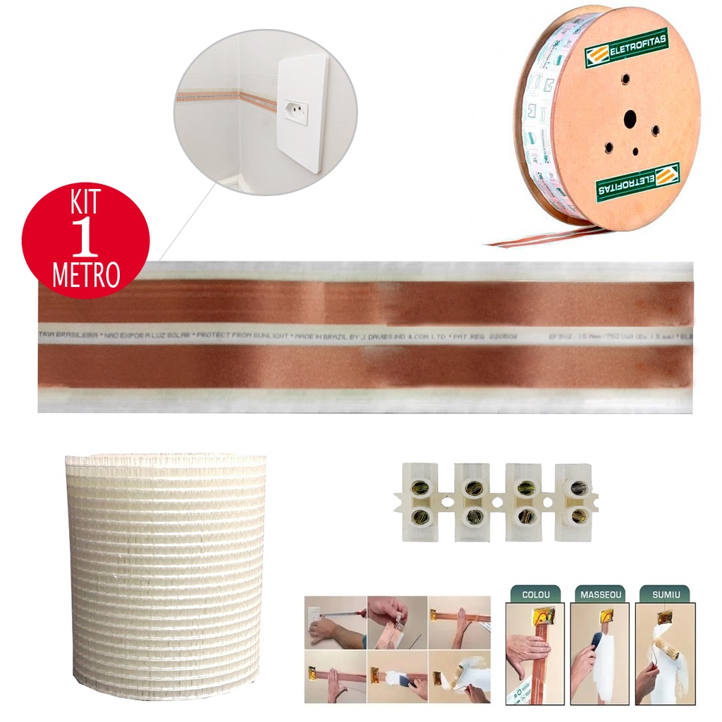Kit Fita Elétrica 3 Pistas - 1 Metro Eletrofita 15a + Tomada